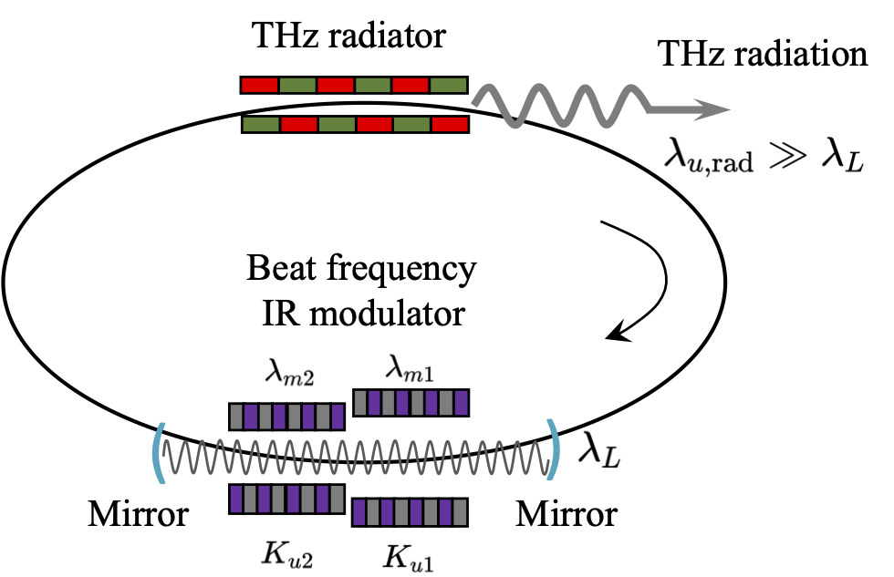 Owing to its unique position in the electromagnetic spectrum, terahertz (THz) radiation holds tremendous scientific value and potential applications in fundamental science, biomedical research, and spectroscopy. In this work we propose a novel mechanism to generate continuous kilowatt coherent THz radiation based on self-sustained laser modulation in a steady-state microbunching storage ring. Our analysis and calculations support the potential feasibility of this novel mechanism. Our demonstrated example shows that at 600 MeV electron beam energy, within the cavity reflectivity range 𝑅 ≈ 0.9995 ∼ 0.9996, approximately 1 kW of continuous coherent radiation at 5 THz can be generated. Since this scheme is based on free electrons, similar radiation output characteristics can be tuned across a wide range of 1–10 THz, making it an exceptionally valuable tool for scientific exploration.
