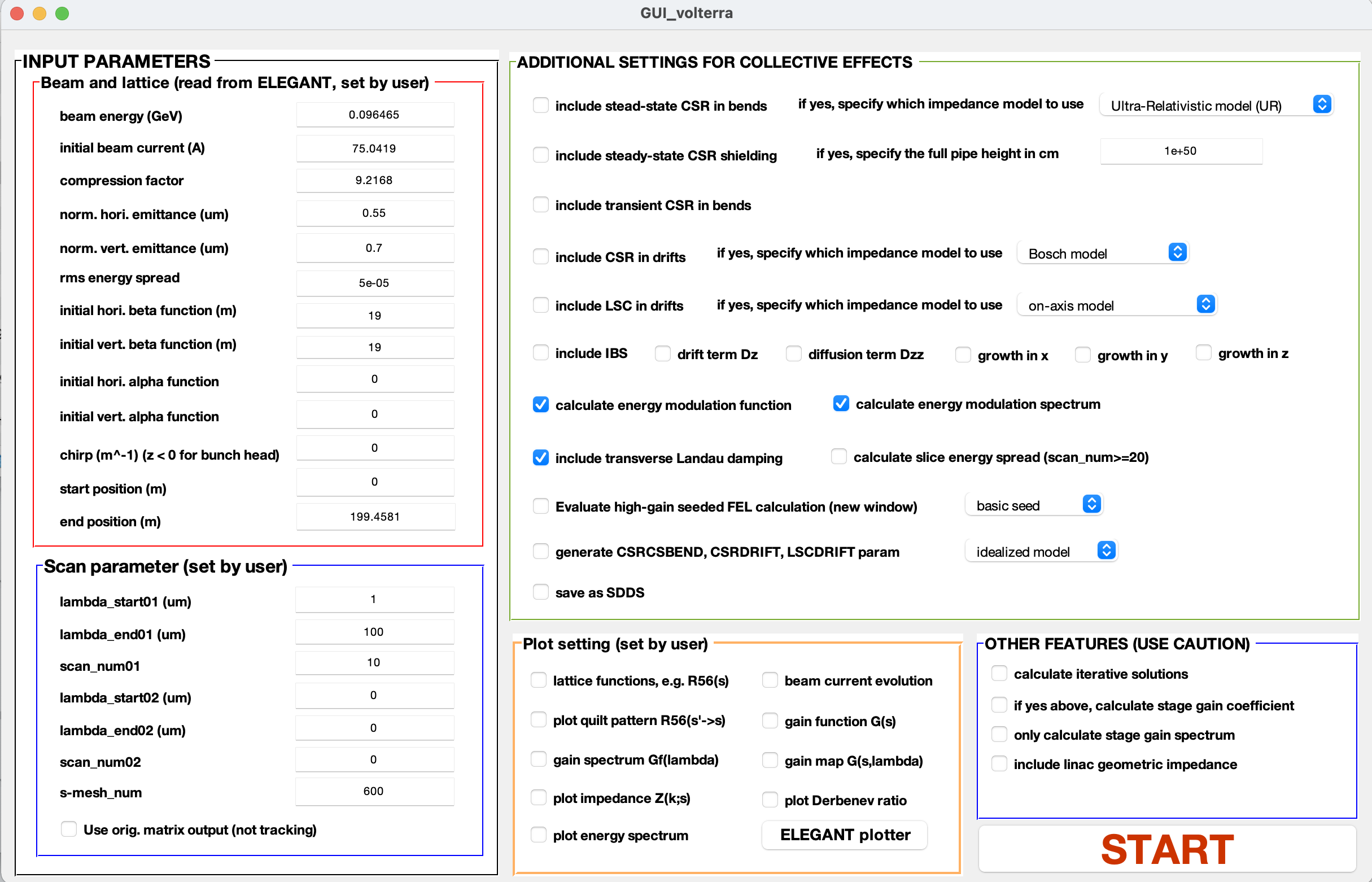 We also develop a semi-analytical Vlasov solver for efficient calculation of the microbunching gain for a gener linear transport lattice. This solver, volterra, is by written by MATLAB, GUI-based, incorporated with particle tracking code ELEGANT. See source code for more details.